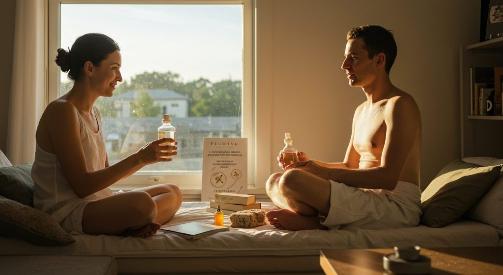 • Préparer l’ambiance : Créez un environnement confortable et intime. Cela peut inclure des lumières tamisées, de la musique douce, ou tout autre élément qui vous met à l’aise.